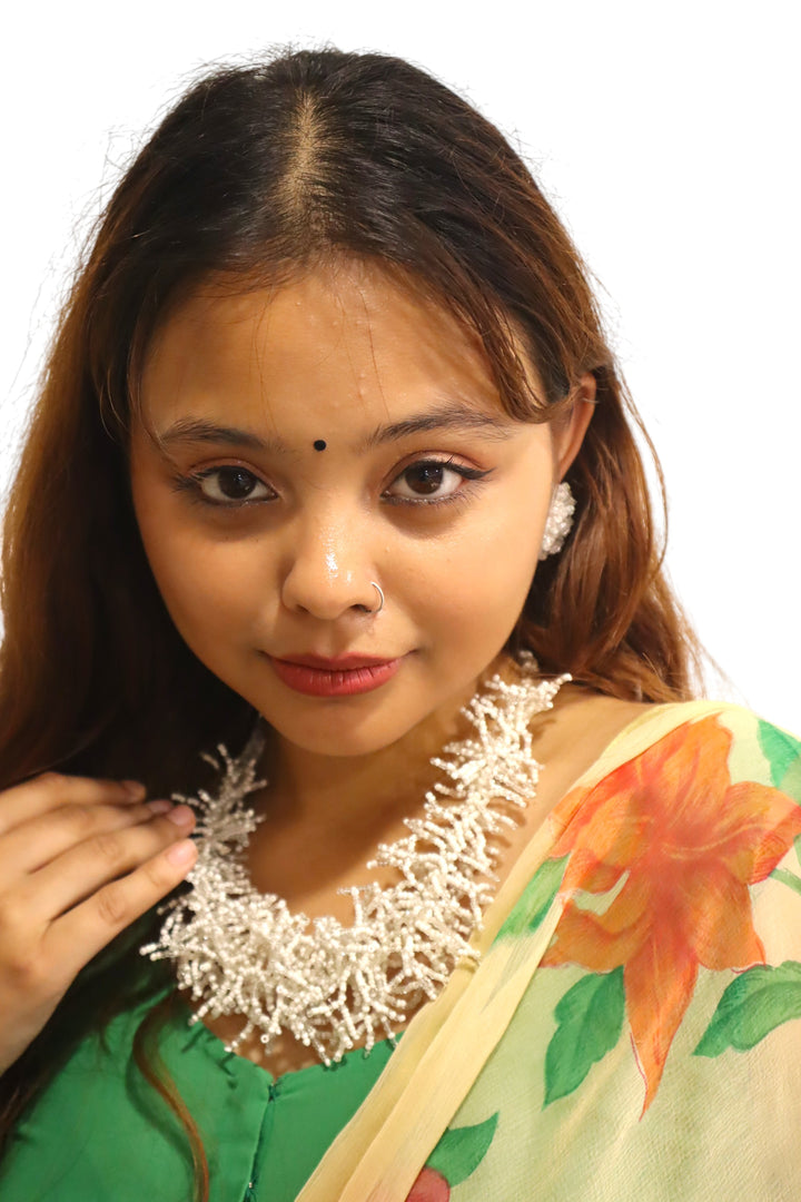 Turn heads with our Frosted Elegance Cluster Necklace – a dazzling accessory for both Western and Indian wear.
