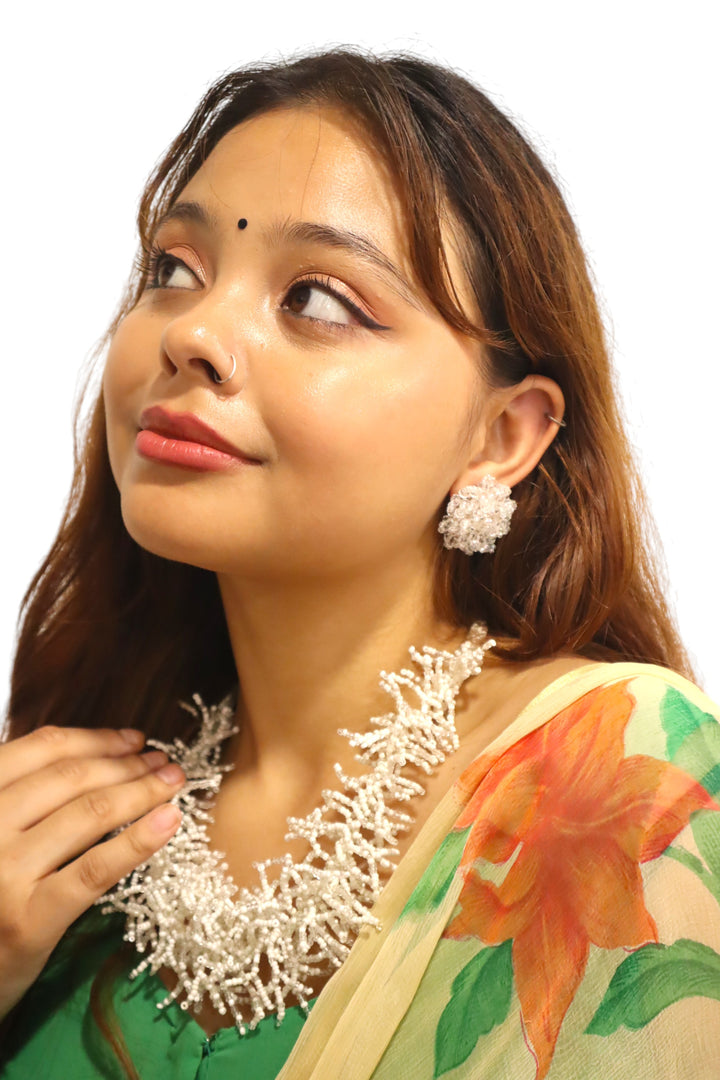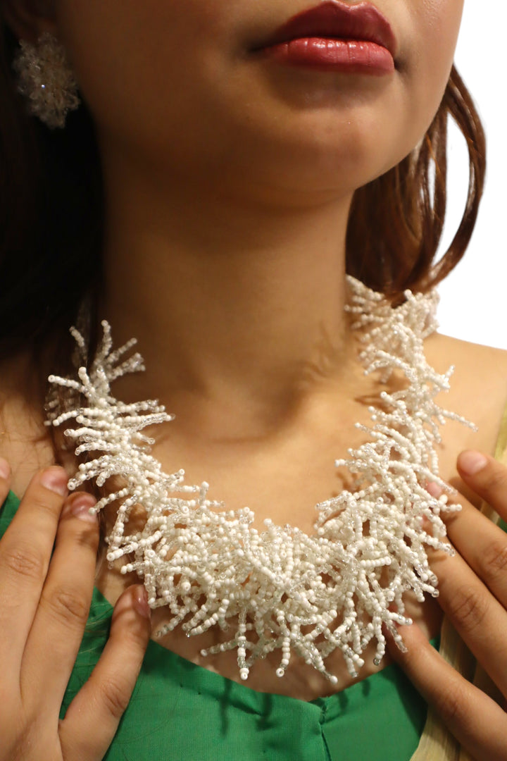Frosted Elegance Cluster Necklace Set - OFF WHITE - Handmade