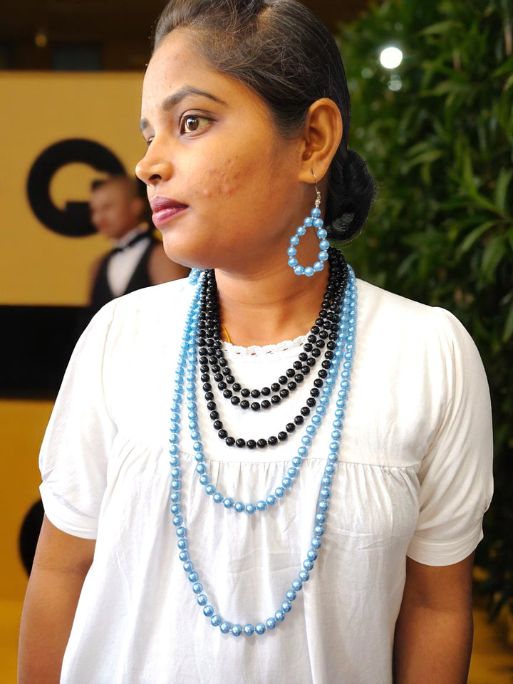 ach Aahana set combines two complementary pearl strands that can be styled individually or together. Whether you want to layer them, criss-cross them, or pair them with matching earrings — this one’s your ultimate desk-to-dinner, day-to-night, modern-to-traditional jewellery companion.
