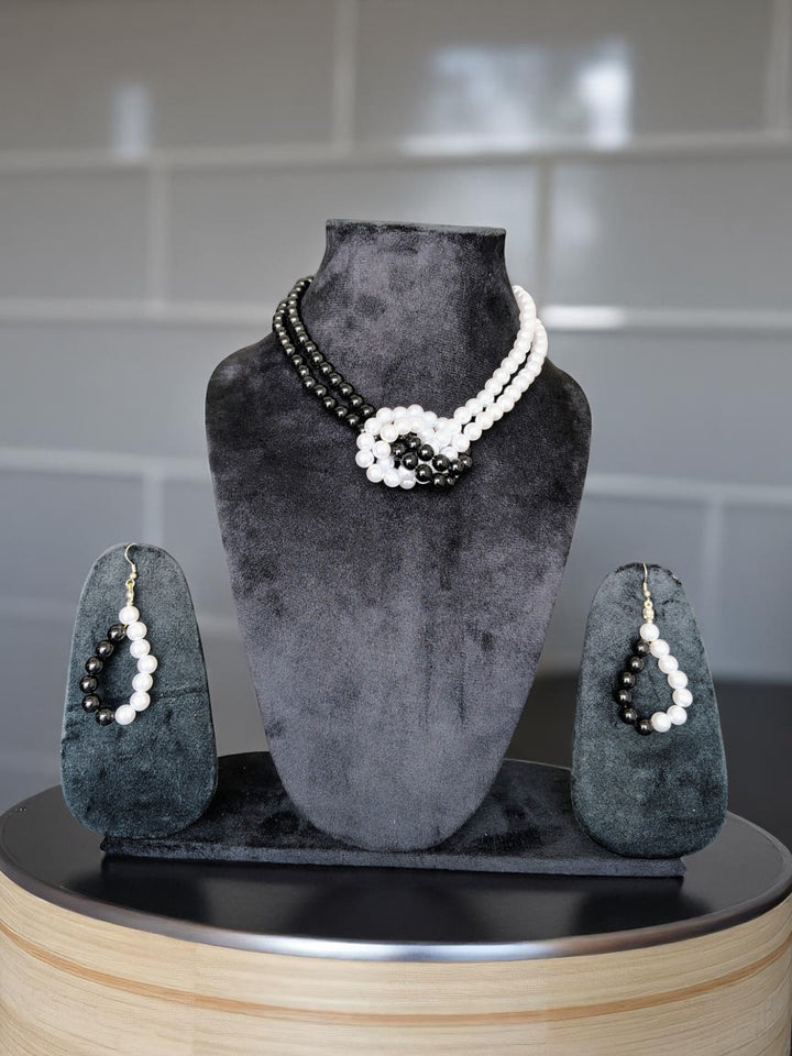 Each piece features a handcrafted knot centerpiece, blending two pearl shades into one timeless creation. The matching dual-tone earrings complete the look — or can be worn solo when you want to keep it light and minimal.