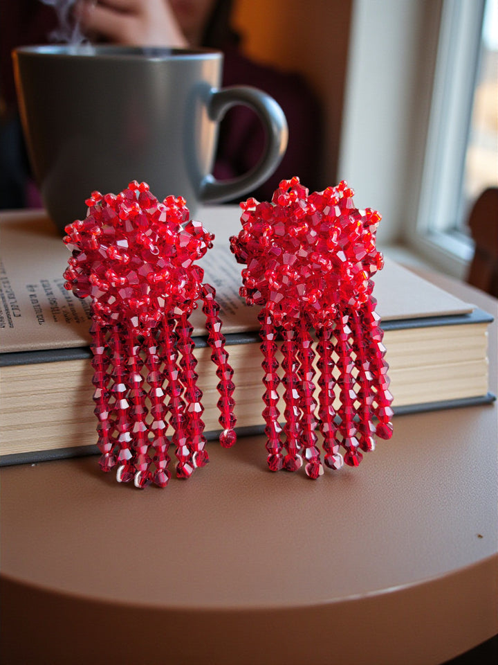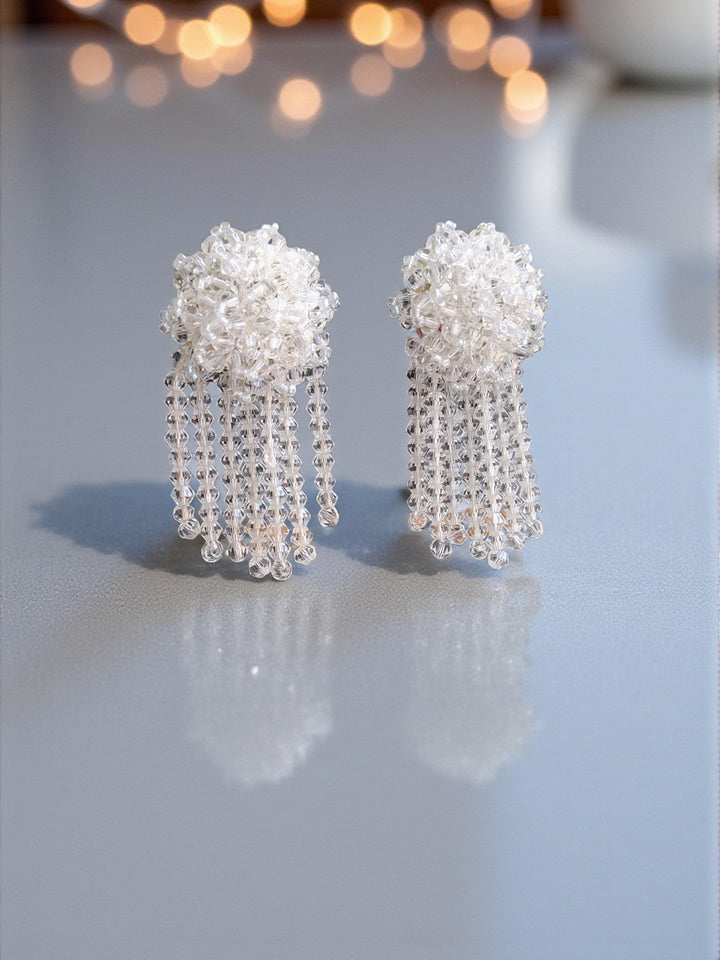 Handmade Crystal Water Fall Earrings - Short - Made in 180 Hours