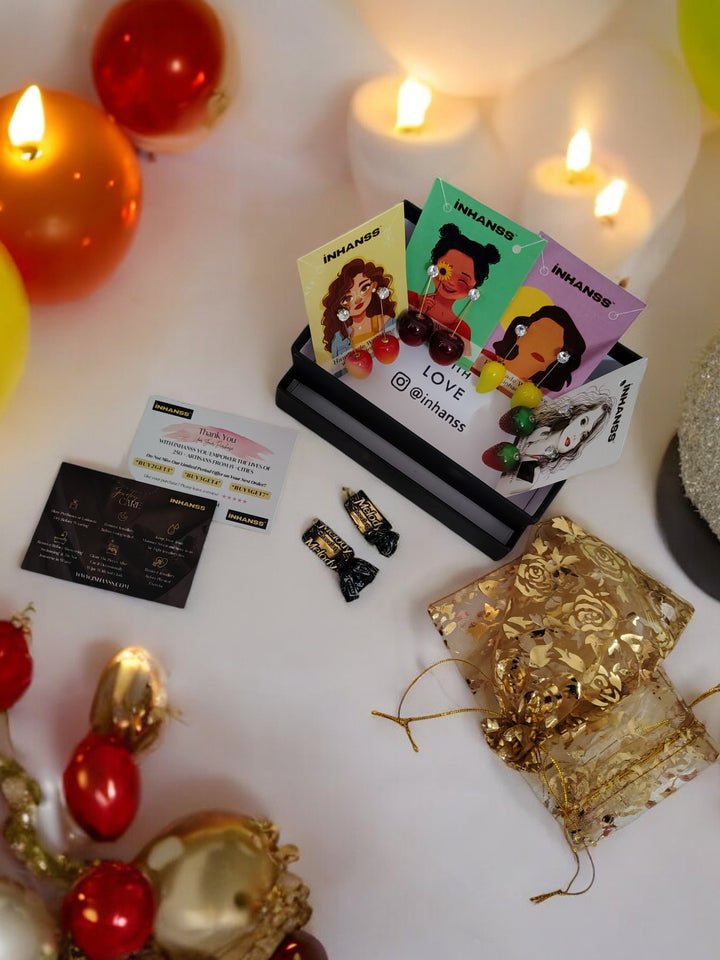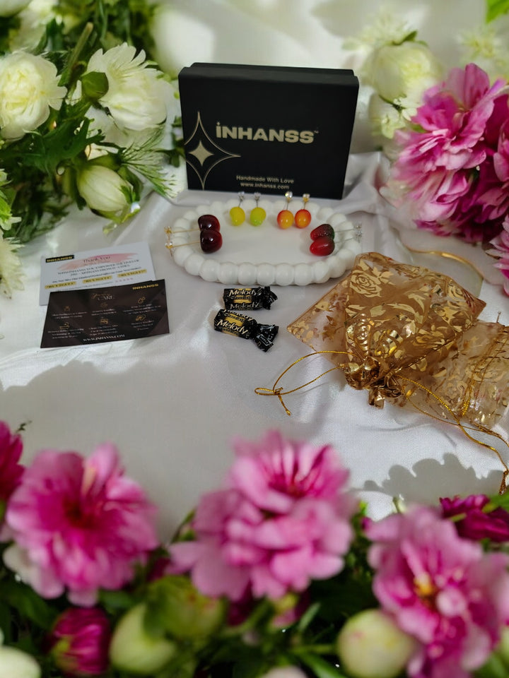 Introducing the INHANSS Fruit-Inspired Earrings Gift Hamper – a collection of uniquely handpicked earrings that combine playful charm with sophisticated elegance. These delightful earrings, inspired by the fresh appeal of fruits like strawberries, cherries, and more, are designed for the vibrant woman who loves to embrace fun fashion while staying chic.