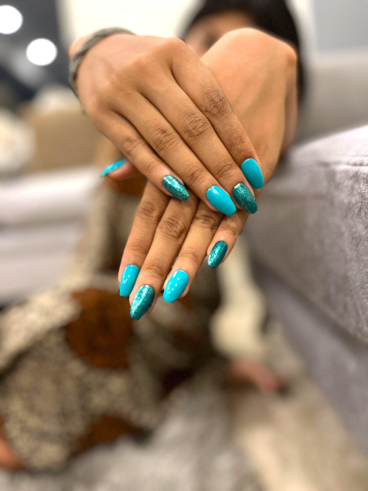 Handmade Reusable Premium Press on Nail with Nail Tabs : Glittery Green