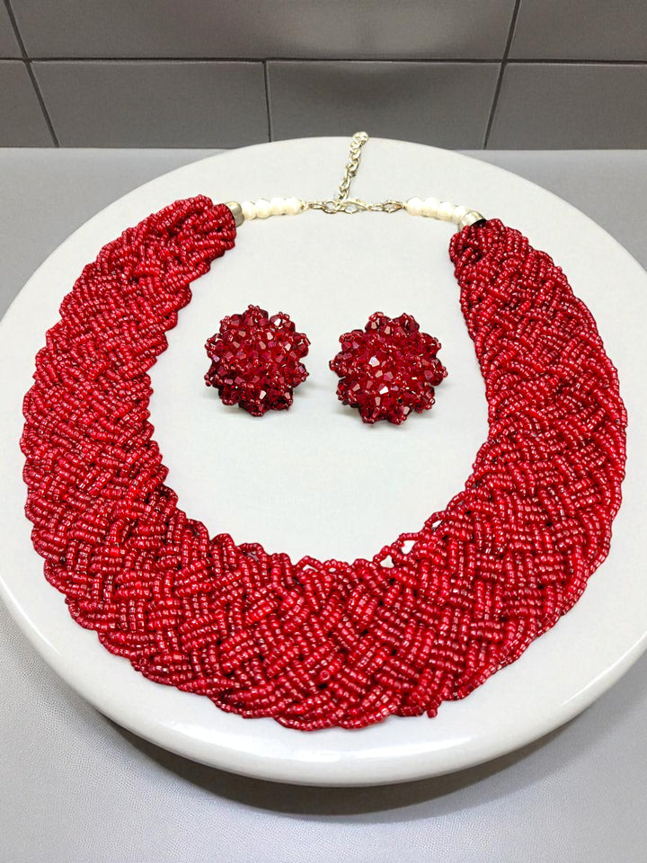 Indulge in the opulence of the Handmade Beaded Choker Set, an exquisite addition to your jewelry collection designed for informal yet chic occasions. Handcrafted with precision, each piece in this set features intricately woven beads, creating a striking texture that captures light and attention alike.