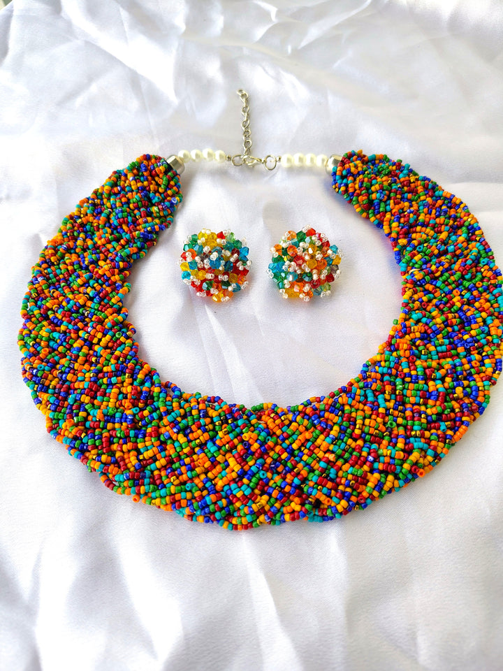 Turn heads with the Handmade Beaded Choker Set! Perfect for informal wear, this handmade set brings a splash of vibrant colour and sophistication to your look. Discover a statement piece crafted to celebrate your unique style.