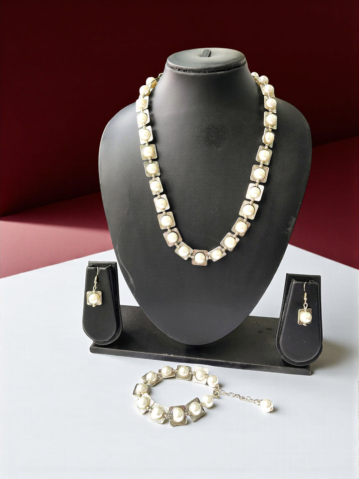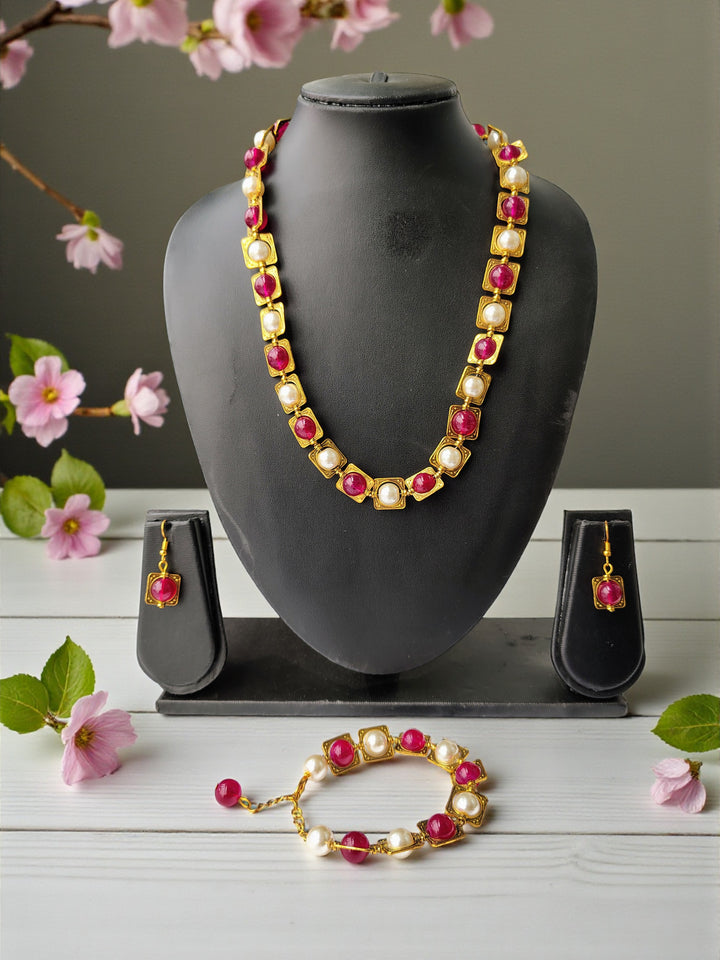 The necklace sits gracefully on the neckline, the bracelet adds a finishing touch to your look, and the earrings bring the entire ensemble together with subtle luxury. Handmade with care and precision, each piece reflects artistry, poise, and a timeless regal vibe — the kind that turns everyday outfits into statement styles.
