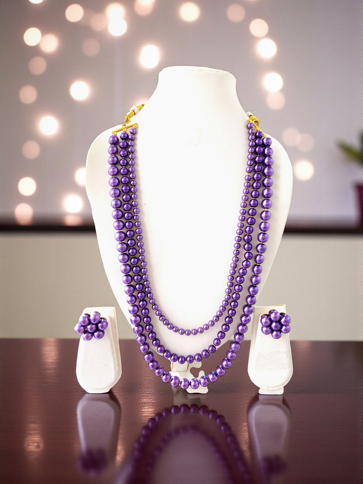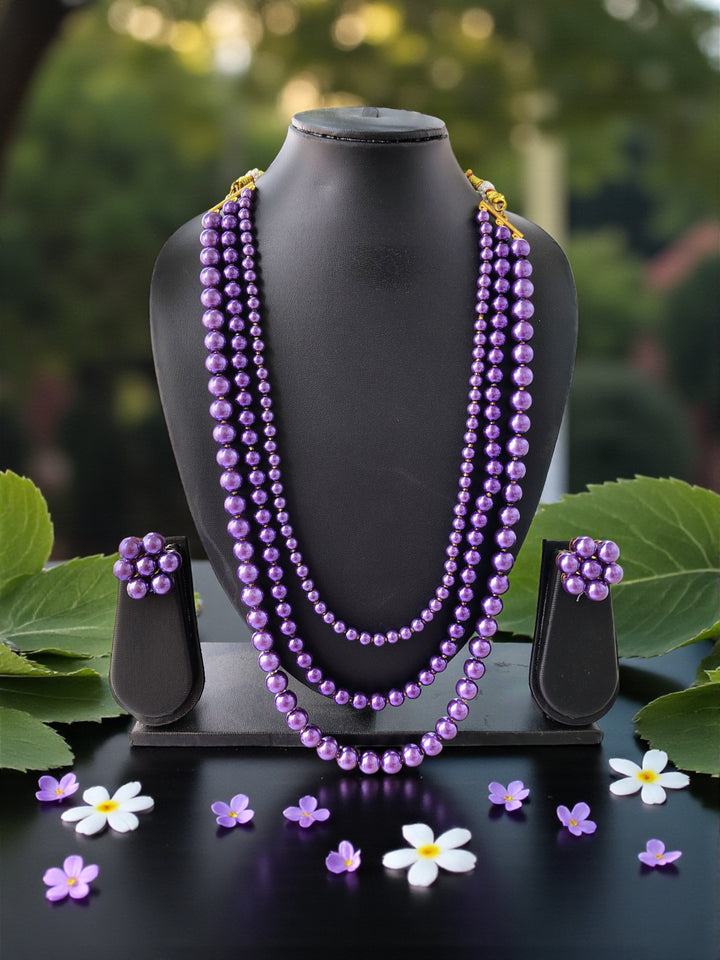Rang Mahal – 3-Layer Pearl Necklace Sets (Limited Edition) With Big Floral Studs | Adjustable Fit | Only 1 Set Per Colour Launched