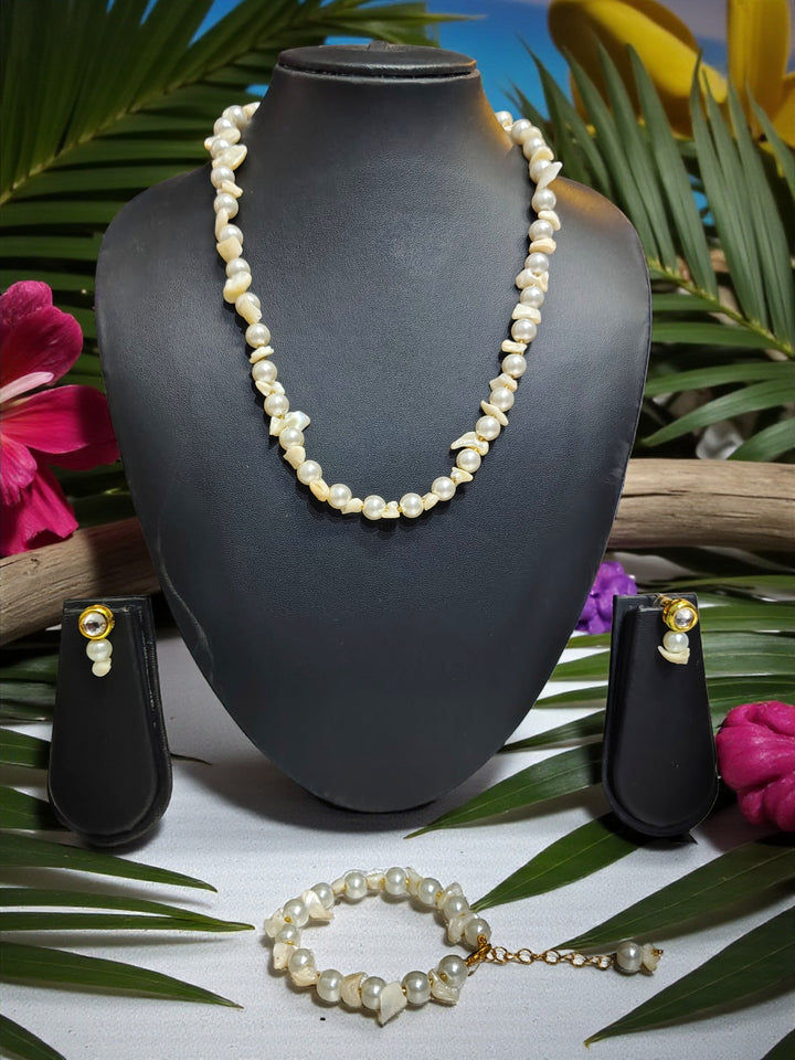 Samudrika – 3-Piece Sea Stone & Pearl Set (Necklace, Bracelet & Kundan Earrings)