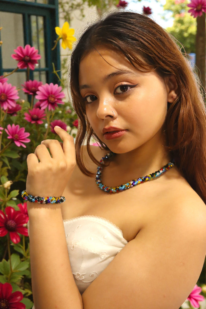 Noor-e-Jalwa – Handmade Crystal Bead Necklace / Necklace with Earrings -Adjustable -(Available in 16 Stunning Colors)